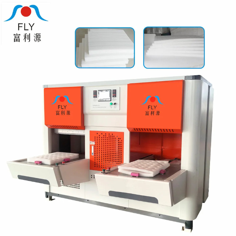 With manipulator grasp has been blanked good EPE sheet,and other piece of EPE foam bonding, forming a special shape.
